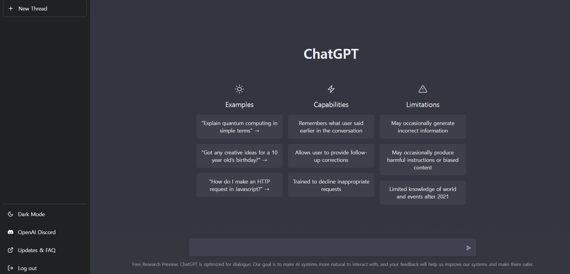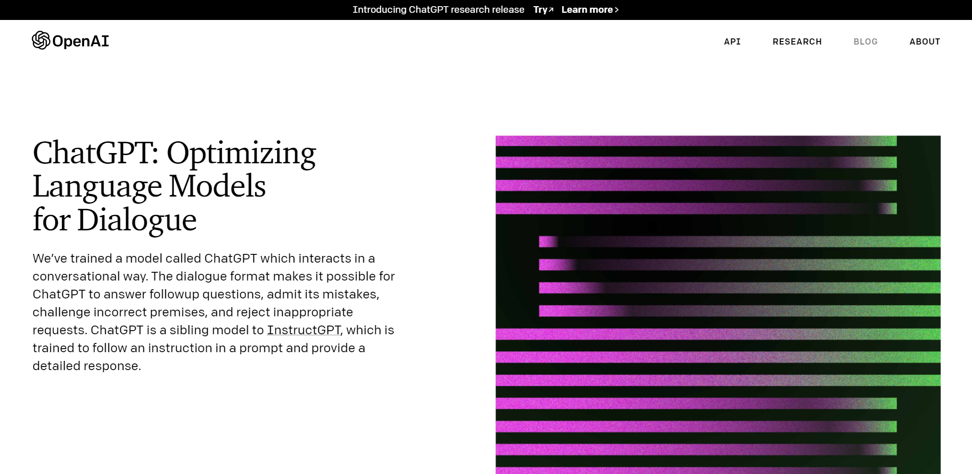 We’ve trained a model called ChatGPT which interacts in a conversational way. The dialogue format makes it possible for ChatGPT to answer followup questions, admit its mistakes, challenge incorrect premises, and reject inappropriate requests. ChatGPT is