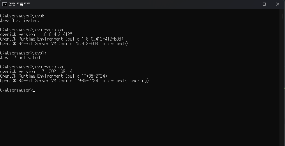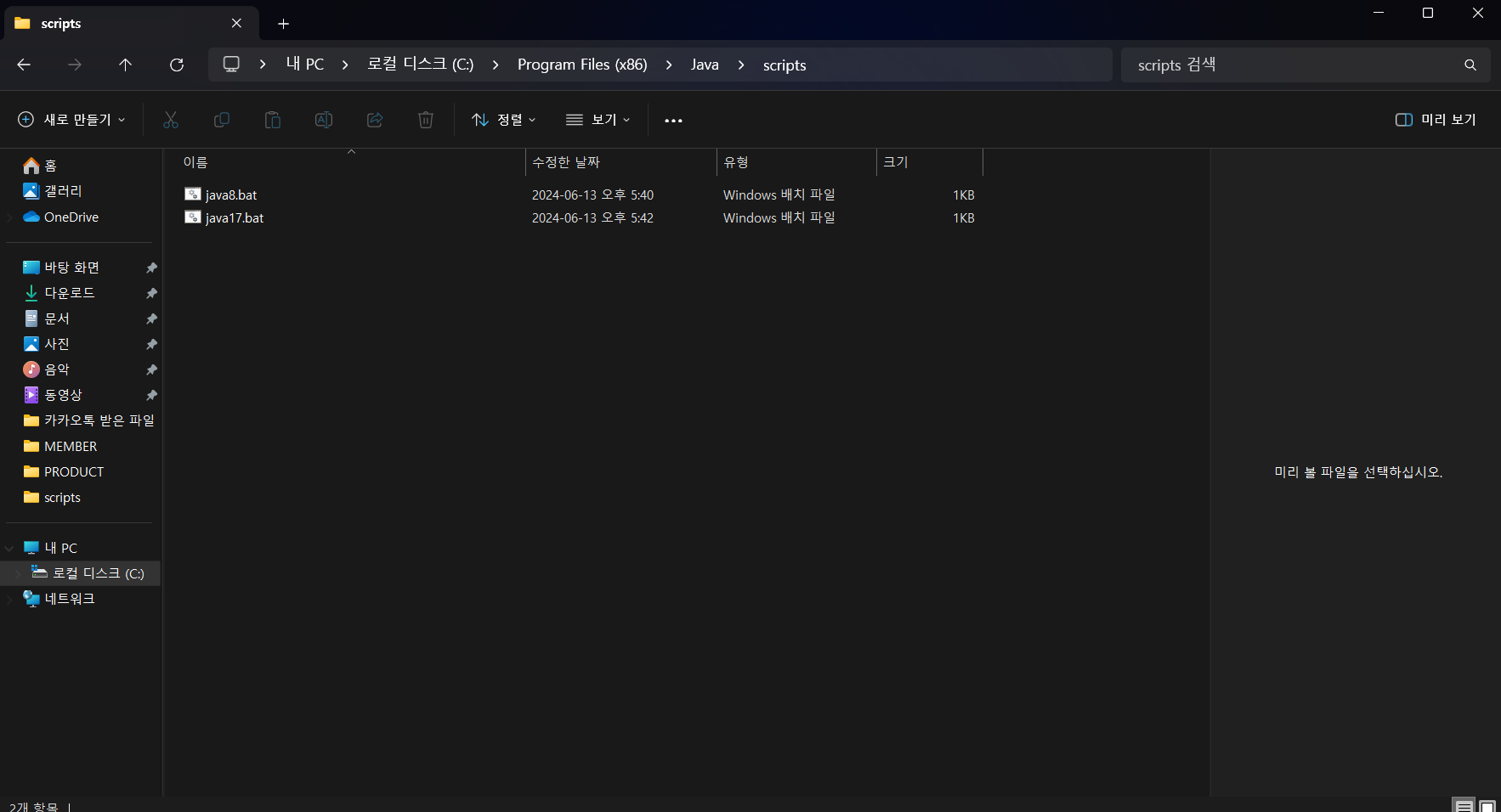 scripts 디렉토리 내부에 java8.bat, java17.bat 파일 추가