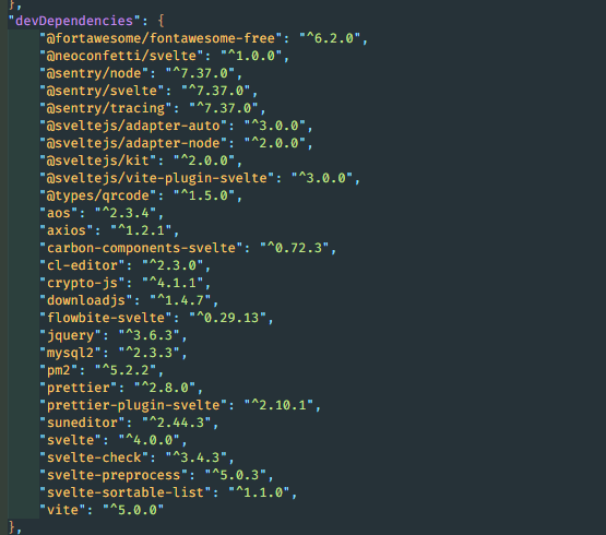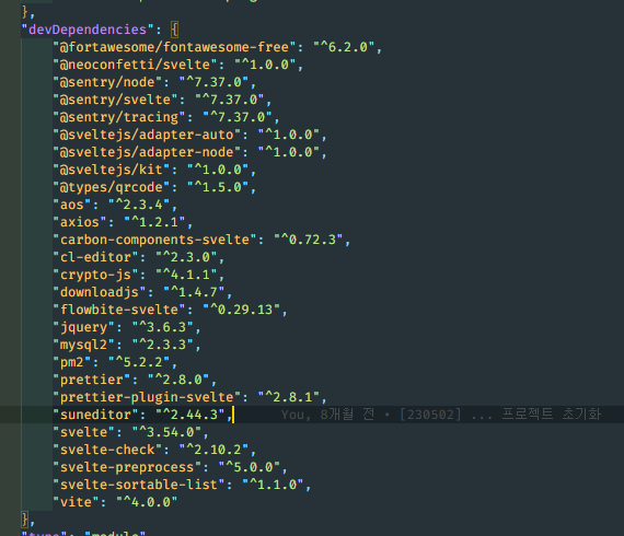 눈에 띄는 것만 보면, vite 4 버전, svelte 3.54 버전, sveltekit 1버전을 사용중인 개인플젝...