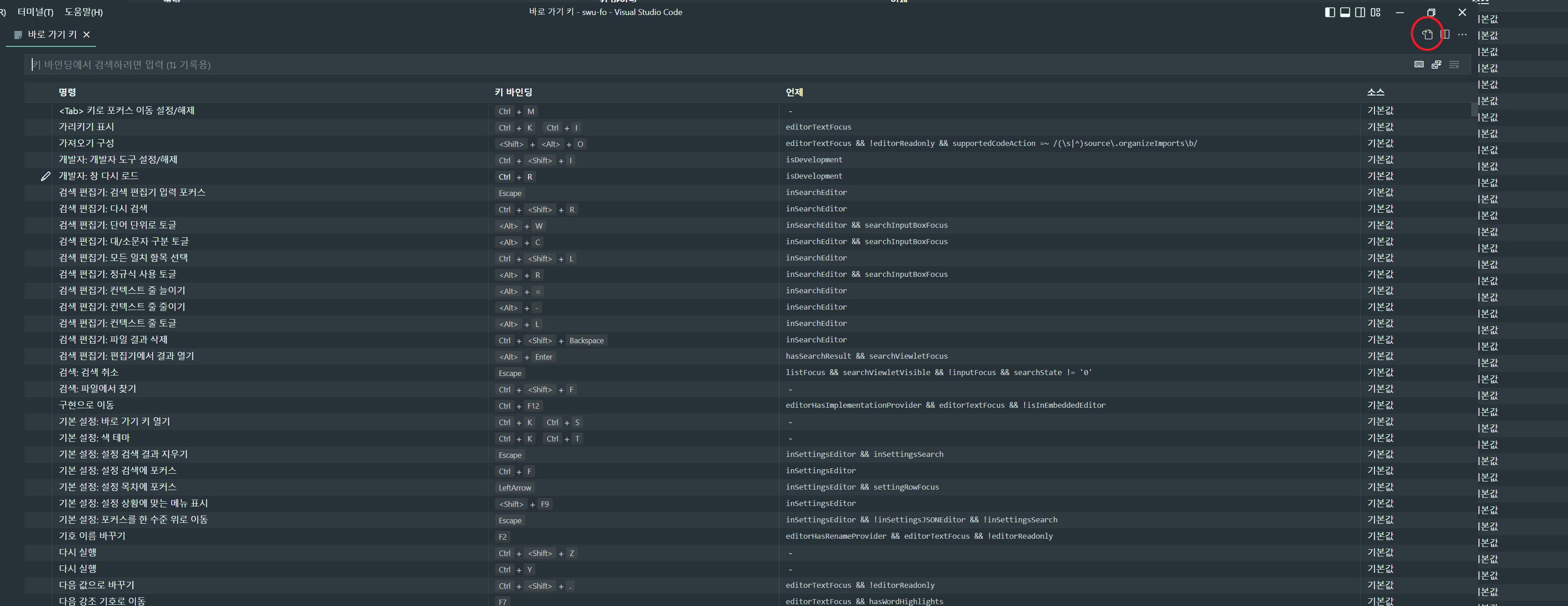 keybindings.json 파일에 접근한다.
